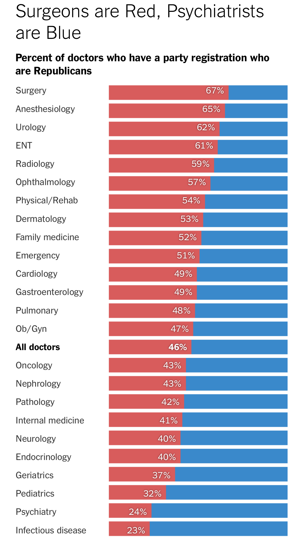 Political affiliations across different medical specialties